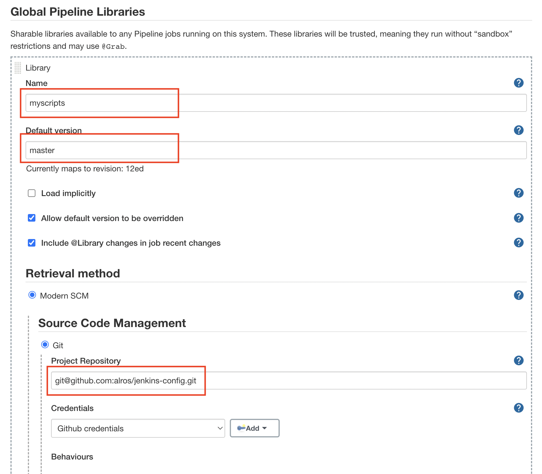 Define the library in Jenkins