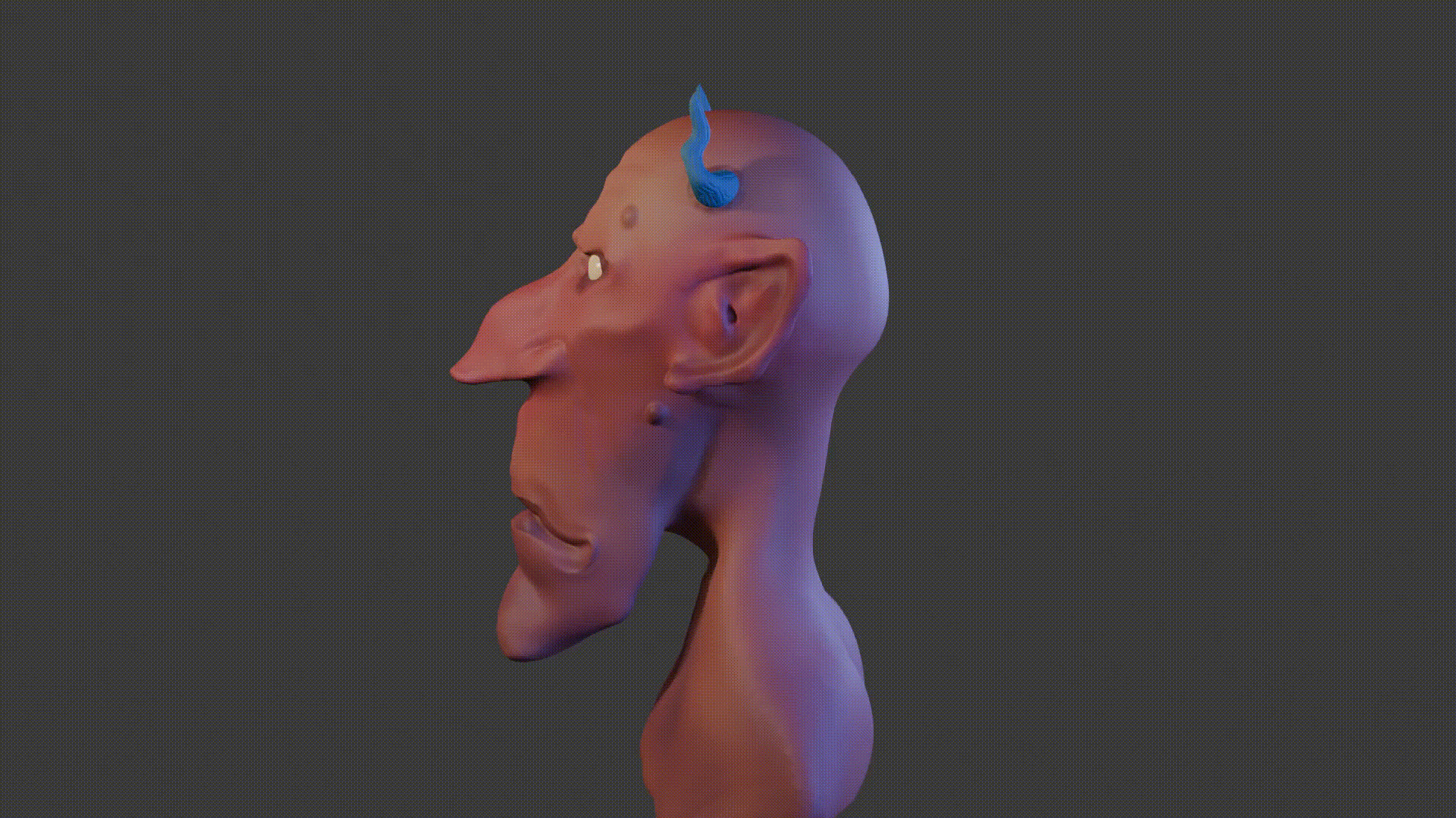 Sculpting was the final piece of the puzzle for gaining a complete view of Blender. This work took me a bit of time. I started with a sphere, and by molding, squeezing, and stretching it, I eventually made a devil with a silly face. It doesn’t look like my reference image (which was much more devilish and cool), but that’s okay.